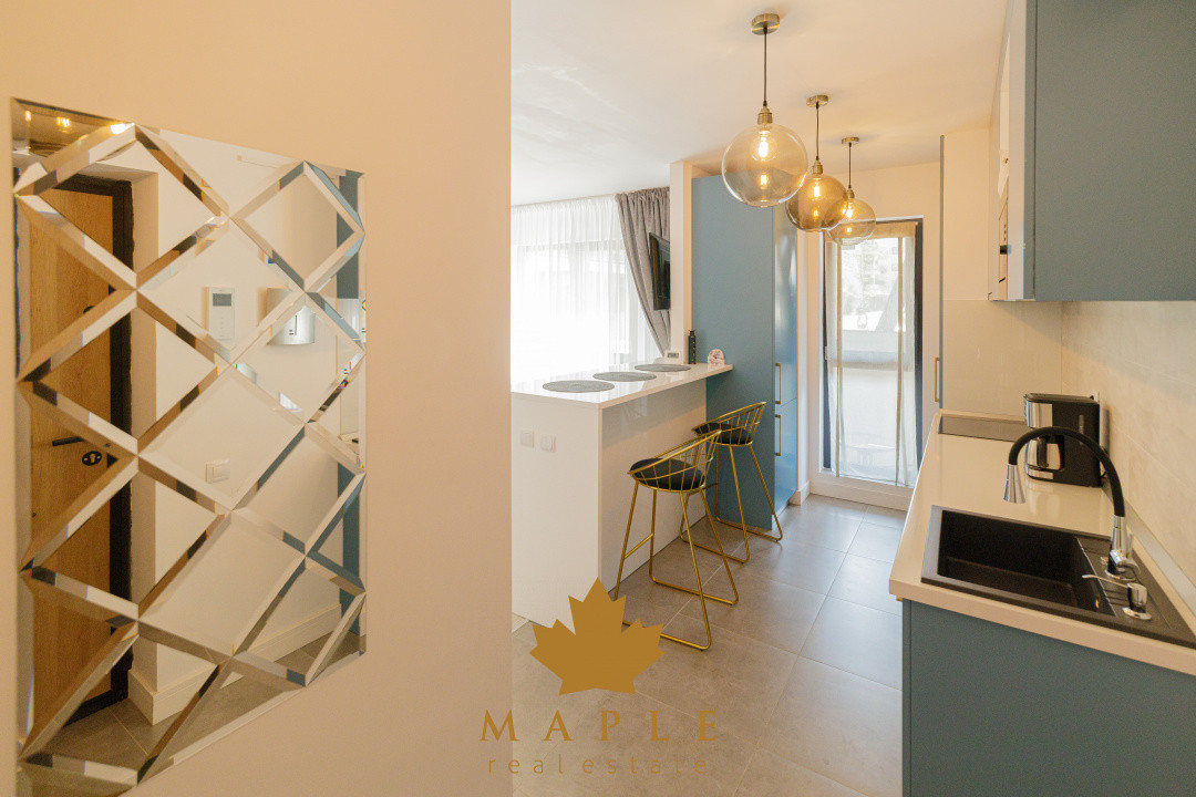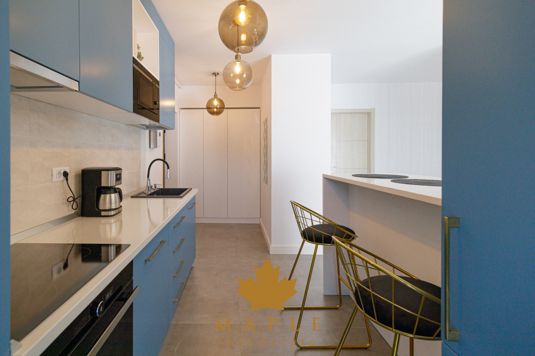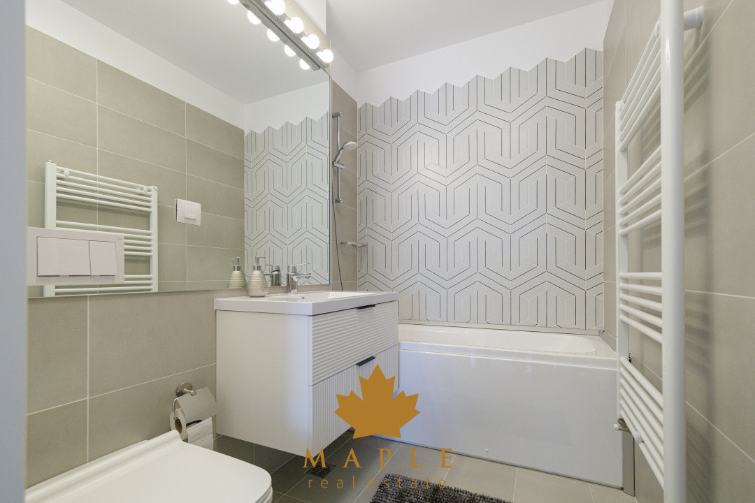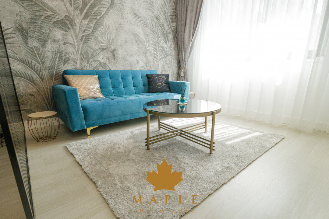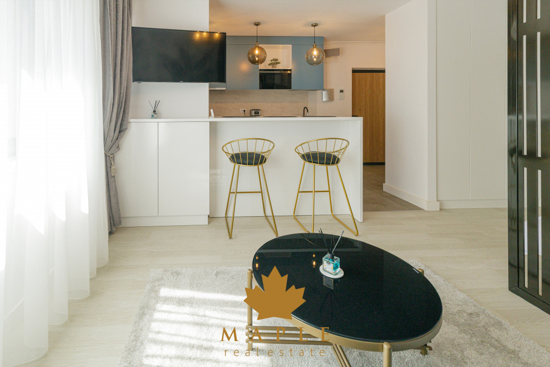 Apartamentul este complet mobilat si utilat cu toate electrocasnicele necesarei, aer conditionat, centrala termica proprie si incalzire in pardoseala.