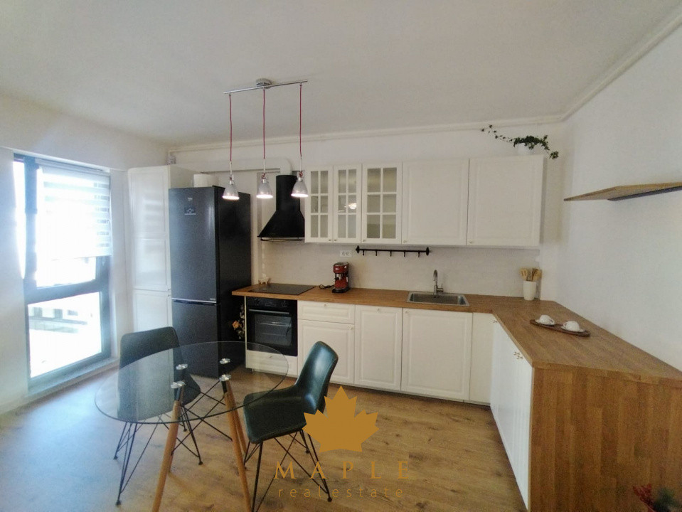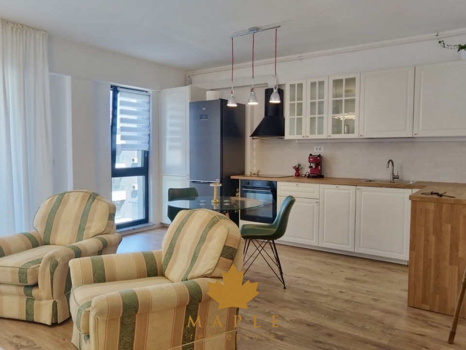 Cu o suprafata utila de 40 mp, si un balcon de 5 mp, acest studio este complet mobilat si echipat, avand un design interior premium. Compartimentarea inteligenta ofera foarte multe spatii de depozitare, asigurand un mediu functional si confortabil. Bucataria separata, este complet mobilata si utilata cu electrocasnice de top.