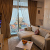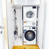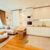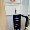 Locuința beneficiază de încălzire în pardoseală, aer condiționat în tot apartamentul, internet gigabit, senzori de temperatură, umiditate și inundație, mașină de spălat rufe, uscător separat și două televizoare OLED. Livingul este amenajat elegant și include zonă de bar cu frigider pentru vinuri, iar dormitorul oferă un spațiu intim și confortabil, cu pat de 160x200 cm și dulap încăpător pe toată lungimea peretelui.