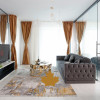 Living-ul are canapea confortabila extensibila din catifea pentru 3 persoane si televizor curb Samsung de 138 cm. Dormitorul beneficiaza de pat matrimonial de 180x200 cm din catifea (cu doua seturi de perne si lenjerii de pat de lux), noptiere cu veioze, aer conditionat si dresing multicompartimentat cu usi glisante silentioase si oglinzi din podea in tavan.