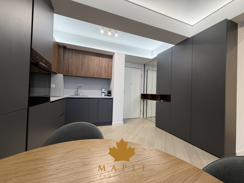 Va prezint spre inchiriere, un apartament de 2 camere, ideal pentru un stil de viață modern, situat în nordul capitalei, in complexul Cortina North. Situat la etajul 10/10, vedere libera, o suprafață utilă de 45 mp și un balcon de 5 mp, acest apartament este complet mobilat și echipat, avand un design interior premium. Compartimentarea inteligentă și spațiile de depozitare generoase, asigură un mediu funcțional și confortabil. Bucătăria de tip open space cu livingul, oferta continuitate si deschidere cu zona de relaxare, este complet mobilată și utilată cu electrocasnice de top.