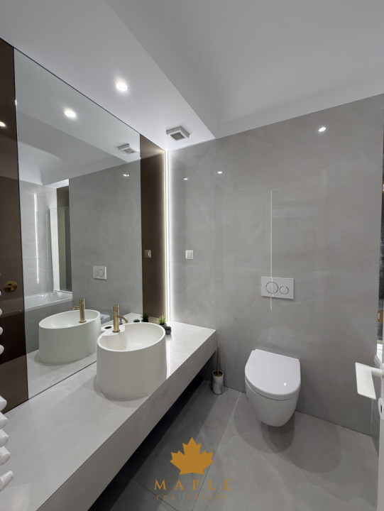 Printre finisajele premium se remarca: parchet triplu stratificat, usi cu toc ascuns tip Filomuro, tavane extensibile Barrisol si instalații Geberit, centrală proprie Ariston, cu calorifere, aer conditionat LG prezent in fiecare camera, tamplarie din aluminium Schuco, obiecte sanitare Daniel Rubinetterie, gresia si faianta KTL, podea flotanta pe terasa.