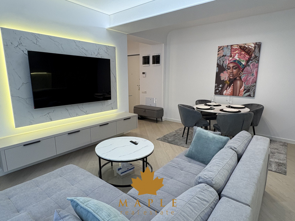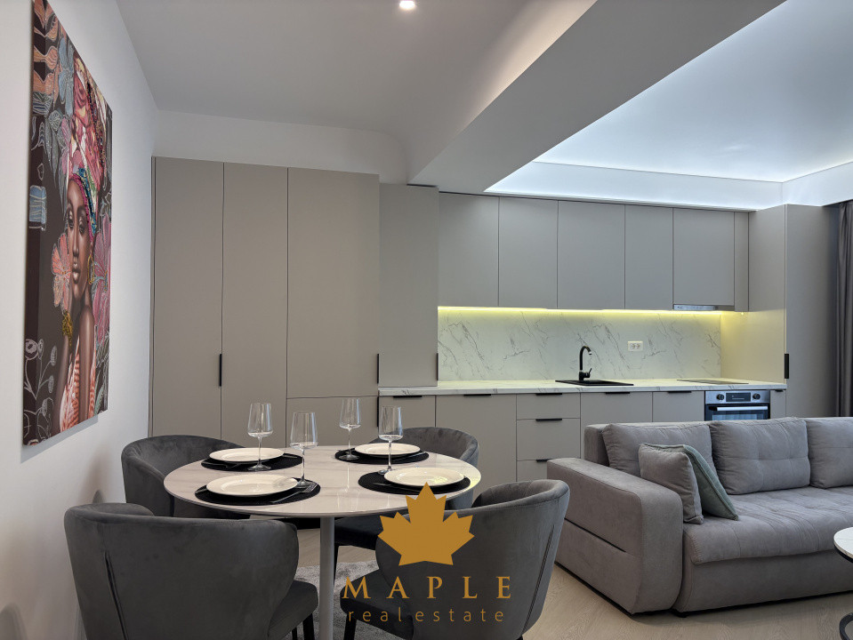 Va prezentam un apartament premium, ideal pentru un stil de viata modern, situat in nordul capitalei, intr-un complex rezidential construit in 2025, amplasat la etajul 7/9. Cu o suprafata utila de 55 mp si un balcon de 3 mp, acest apartament este complet mobilat si echipat, fiind amenajat de catre un designer de interior.