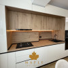 Apartamentul este complet nou, amenajat cu atenție la detalii, într-un stil modern-minimalist, dominat de tonuri calde de lemn natural și alb lucios, combinate armonios. Pardoseala este finisată cu parchet stratificat de înaltă calitate, care se regăsește în toate camerele, oferind continuitate vizuală și un aer sofisticat.