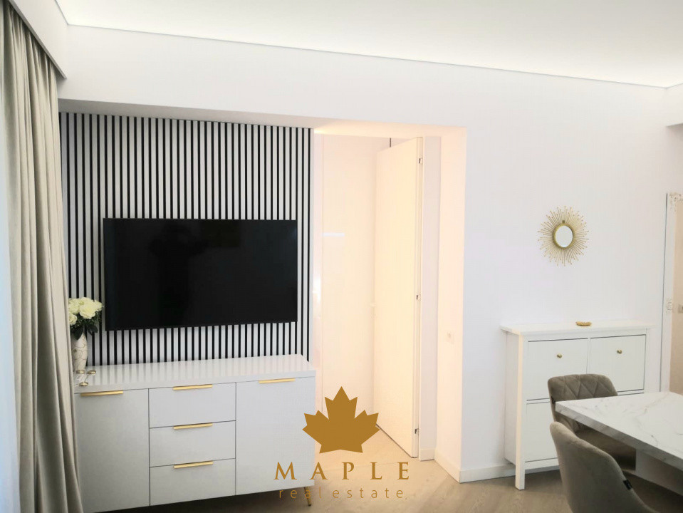 Va prezint spre inchiriere, un apartament de 2 camere, ideal pentru un stil de viață modern, situat în nordul capitalei, in complexul Cortina North. Situat la etajul 6/10, cu o suprafață utilă de 45 mp și un balcon de 5 mp, acest apartament este complet mobilat și echipat, avand un design interior premium. Compartimentarea inteligentă și spațiile de depozitare generoase, asigură un mediu funcțional și confortabil. Bucătăria de tip open space cu livingul, oferta continuitate si deschidere cu zona de relaxare, este complet mobilată și utilată cu electrocasnice de top.