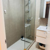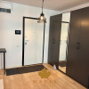 - Baie spatioasa dotată cu duș walk-in, spațiu pentru depozitare și mașina de spălat rufe, combinând utilitatea cu designul modern.