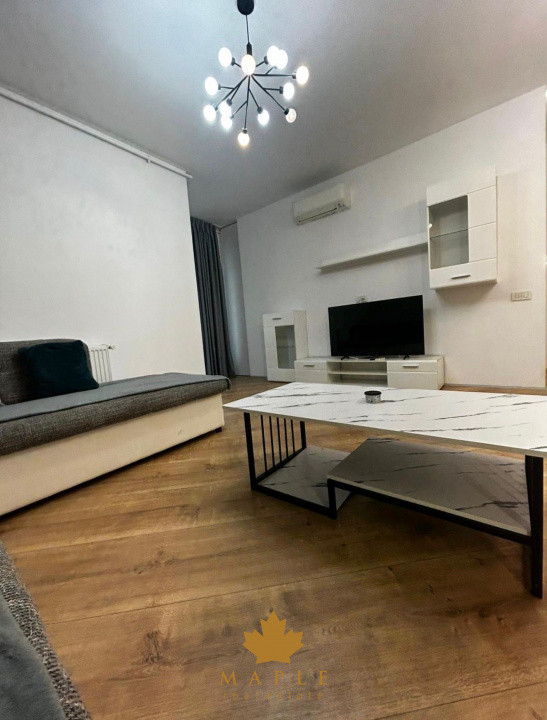 Proprietatea este complet mobilată și utilată, cu un design contemporan, în tonuri calde și elegante. Livingul este aerisit și confortabil, perfect pentru relaxare, iar bucătăria open space este complet echipată și integrată armonios în spațiu.